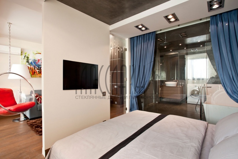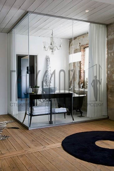 Цельностеклянные перегородки (частный интерьер)Цельностеклянные перегородки сегодня уже не редкость и для частного жилого интерьера. Их безопасность и функциональность доказана на практике, поэтому такие экстравагантные строительные решения становятся всё более интересны и для обычных потребителей. Сделанные из калёного стекла или триплекса, светопрозрачные конструкции отличаются механической устойчивостью и легко могут противостоять бытовым нагрузкам (перепад температур, влажность, ударные нагрузки), благодаря этому, их можно использовать, в помещениях, отличающихся агрессивными условиями эксплуатации (ванная, кухня, балкон). При этом, стекло не выгорает, не царапается, не подвержено коррозии, не меняет первоначальный презентабельный вид).Несомненным преимуществом является малый вес перегородок, не оказывающий существенных нагрузок на плиты перекрытий и другие части сооружения. Немаловажную роль играет и эстетическая привлекательность материала. В силу того, что стекло является отличным проводником света и тепла, применение стеклянных перегородок в квартире помогает визуально увеличить имеющиеся помещения и сделать их более светлыми, сократить расход электроэнергии. Выстроить посреди комнаты глухую стену сложно, затратно и не всегда возможно, особенно если в помещении одно окно. Светопрозрачная перегородка - оптимальный выход в такой ситуации, она не снижает степень освещённости, не загромождает обзор и вместе с тем зонирует пространство. |